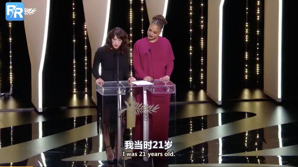 “1997年,我在戛纳被哈维·韦恩斯坦强奸了。我当时21岁,这个电影节是他的狩猎场。我想要做一个预言,哈维·韦恩斯坦再也不会受到这里的欢迎,他会活在羞耻中,被曾经拥戴他、并为他掩盖罪行的一群人所鄙夷。甚至今晚,坐在你们中间的,还有因为对女性不义,应该被指责的人。因为他们的行为,不应该在这个行业里存在,也不应该在任何行业或工作场所存在。你知道你自己是什么样的人,最重要的是,我们知道你是什么样的人,我们不会再让你逃脱了。”