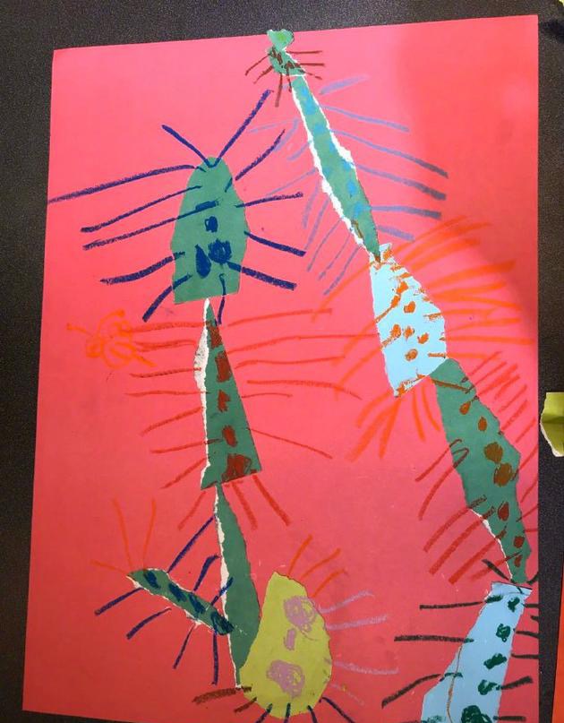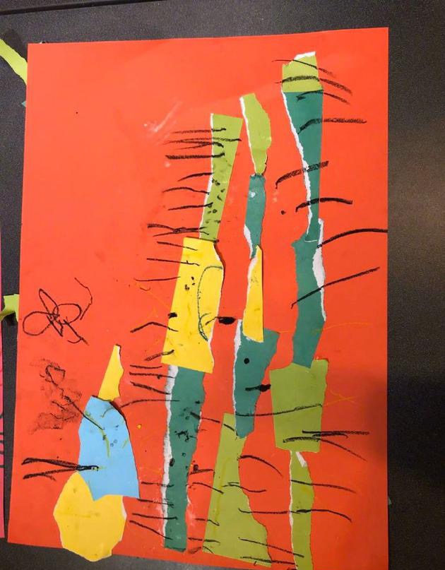 照片中,兄弟俩戴着口罩,手拿画笔,站在画室里对镜露出开心的笑脸,而兄弟俩也十分的有艺术天赋,颜色搭配和谐,色感超级好,有自己独特的想象力,对于两个还未满4岁的小朋友来说,有这样的绘画水平确实相当不错。