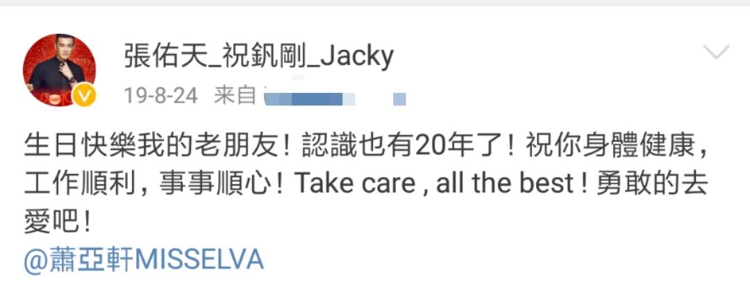 不过两人分手后依旧是好朋友,2019年萧亚轩在生日公开与男友黄皓的恋情,张佑天特地更新动态为她送上祝福。