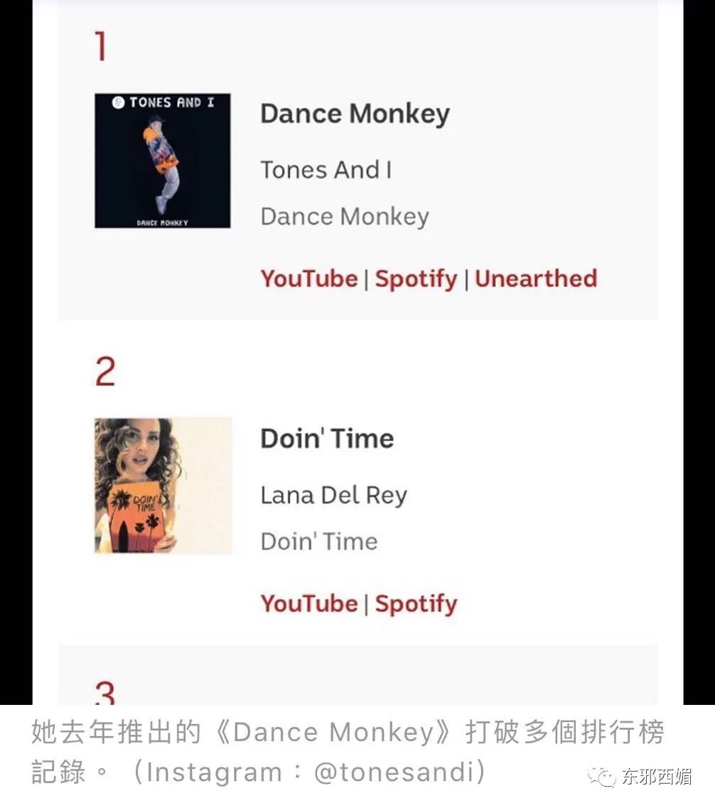 惠特妮·休斯顿的《I will always love you》够经典吧,《Dance monkey》在英国单曲排行榜以获得11周冠军的成绩,打破了前者10周冠军的纪录。