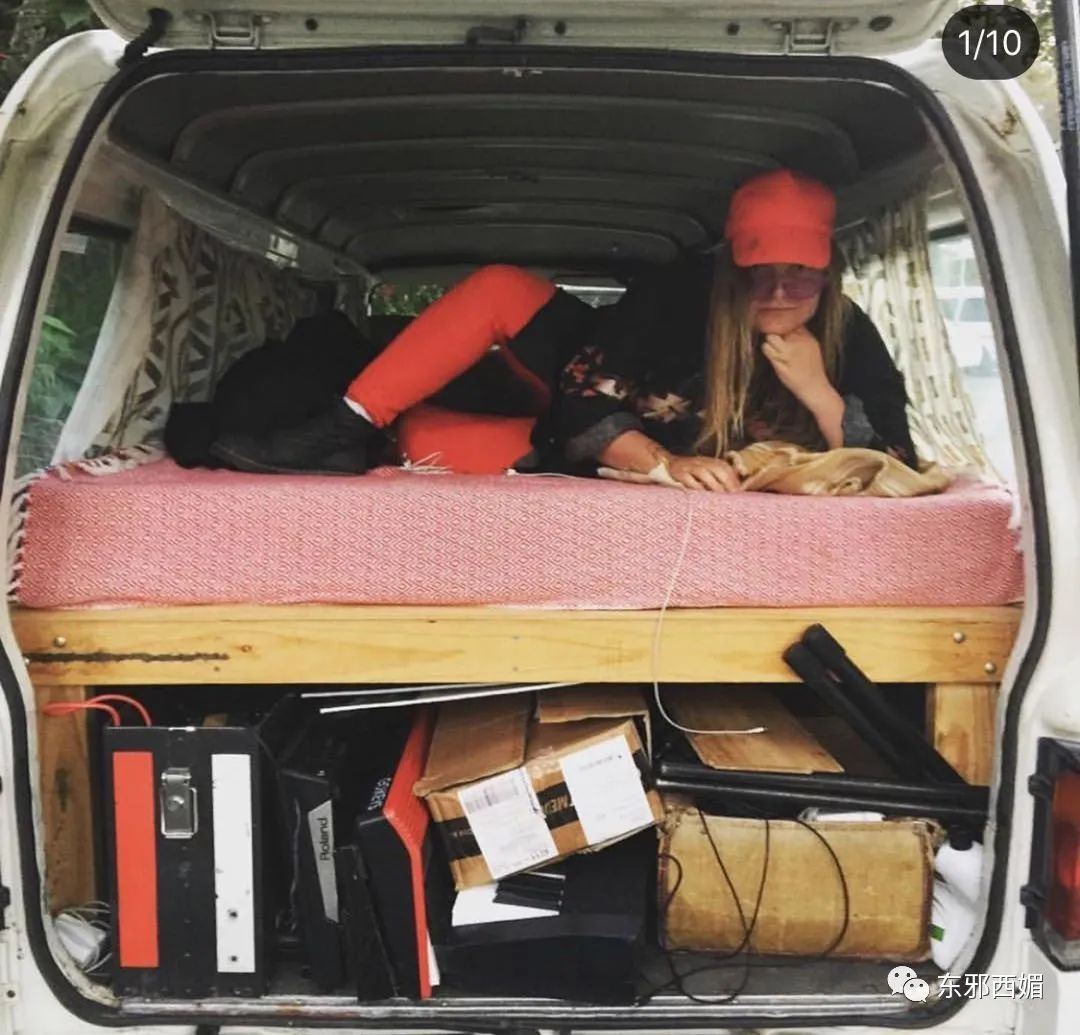 Toni原本住在改装后的小货车里,车厢空间一分为二,上层当床,下层放乐器和杂物。
