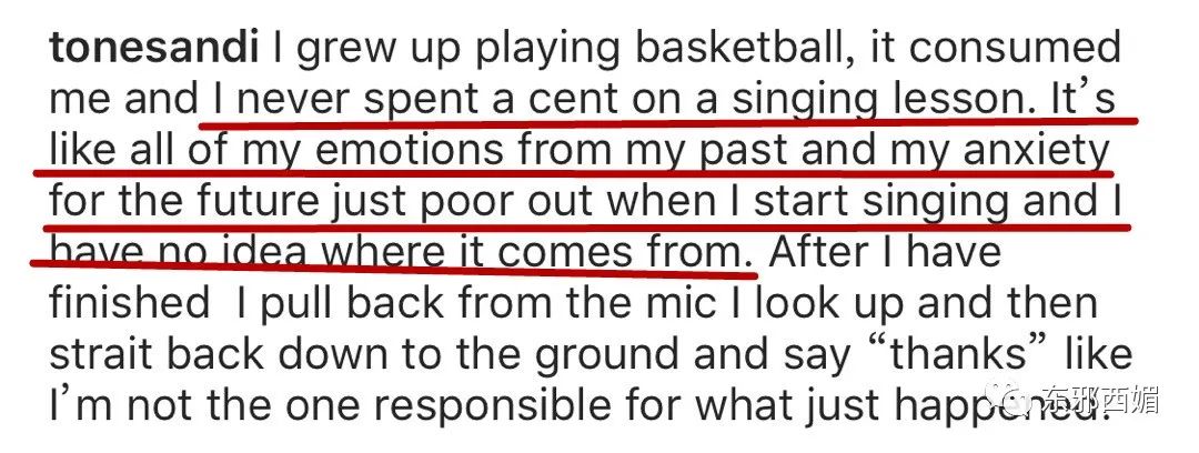 让人连甜品都能放弃的好嗓音,当然有天赋加持:toni没有花过一分钱学习专业音乐知识,但却能写会唱,这是老天赏饭吃。