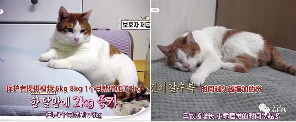 △小乖年轻时体重能达到16斤(左),但现在体重不到8斤。