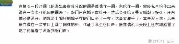 曾经有人爆料说,有次炎亚纶回房晚了,结果汪东城不让他进门,他就又哭又喊敲了好久的门,汪东城还是不开,然后炎亚纶就在房门口坐了一夜。