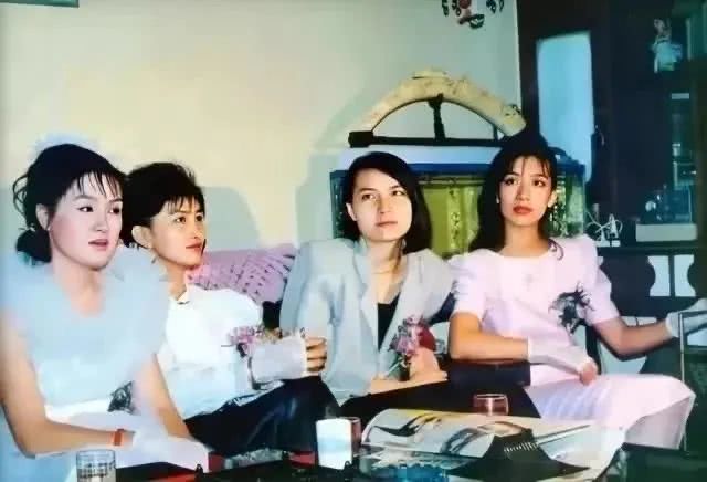 年轻时的邱黎宽长相清秀,所以在18岁时,她就选择出来给明星做代唱,但后来因为嗓子长出了茧子,她不想做手术,就从幕前转到了幕后。(右2为她)