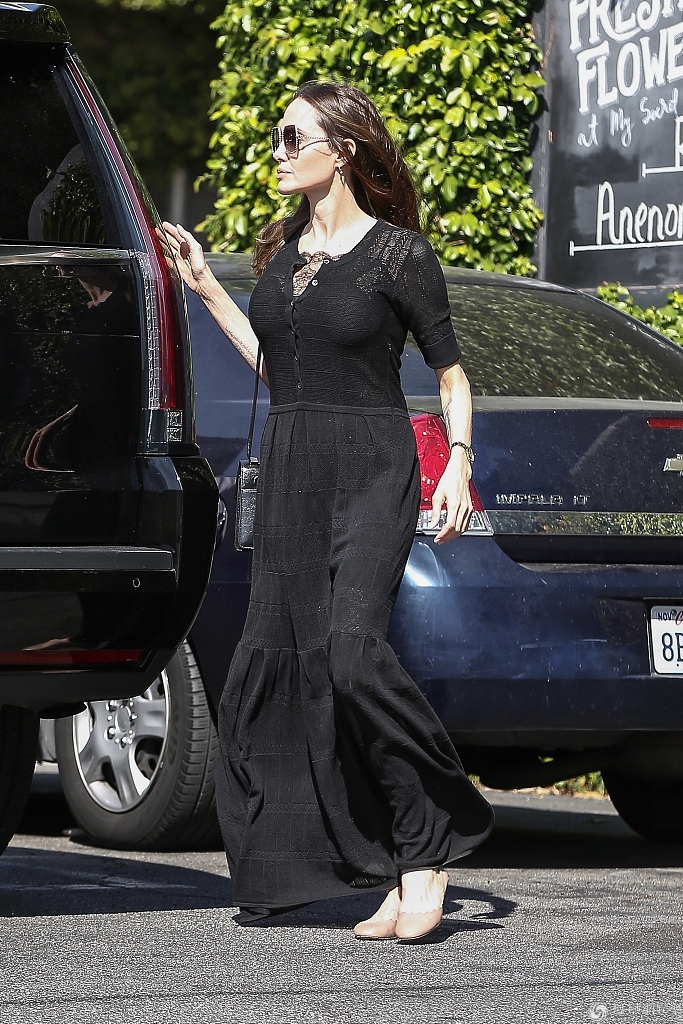 安吉丽娜·朱莉穿一袭黑色长裙素颜难掩迷人魅力。