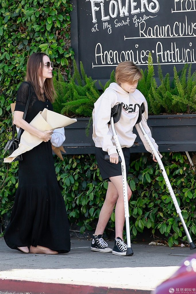 大女儿希洛脚受伤拄拐帅气亮相。