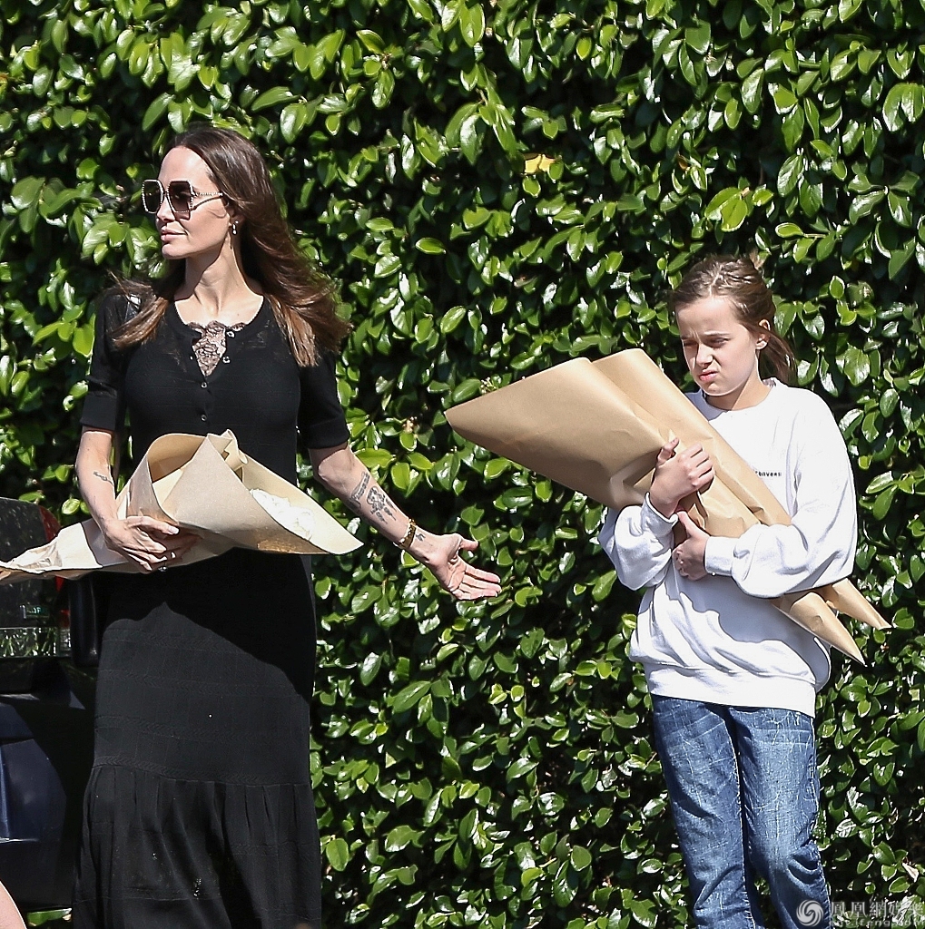 当地时间2020年3月8日,美国洛杉矶,安吉丽娜·朱莉(Angelina Jolie)和女儿维维安·玛琪琳·朱莉·皮特,希洛·朱莉·皮特现身街