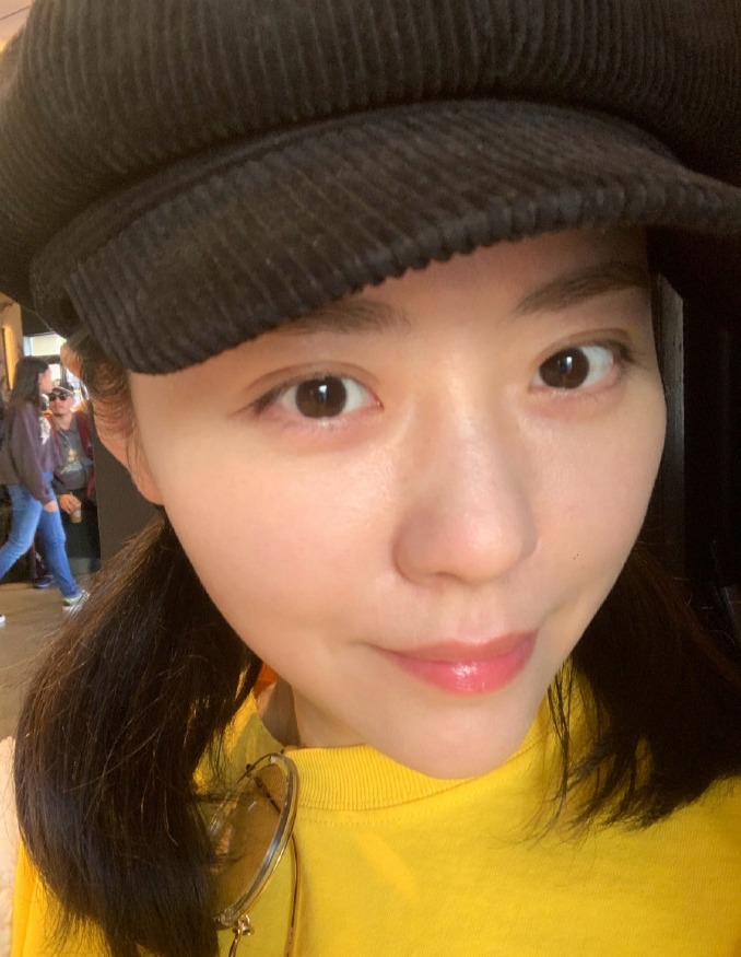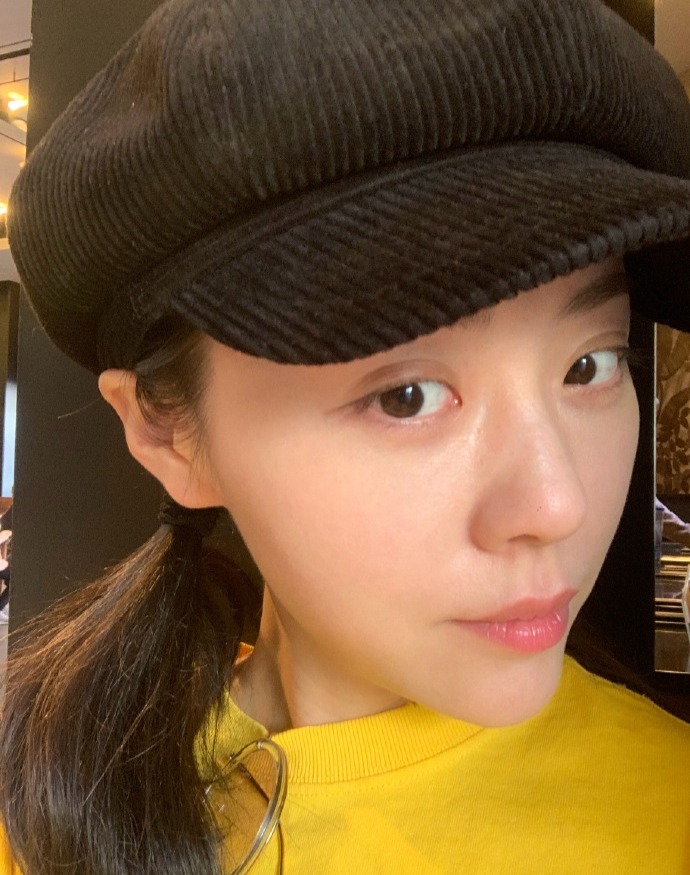 照片中,张靓颖素颜出镜皮肤状态好,身穿黄色毛衣搭配贝雷帽少女感十足。