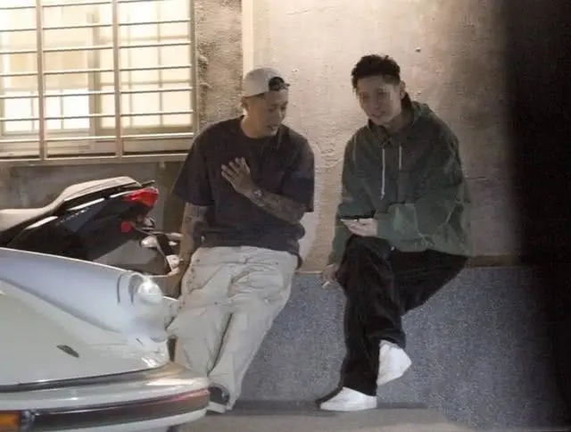 在妻子下车进入餐厅后,余文乐则和朋友坐路边吞云吐雾,聊得非常开心。