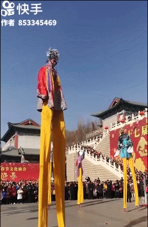还有那些热热闹闹的民间艺术团,他们踩着高跷,拉着乐器,唱戏,舞龙,表演杂技……