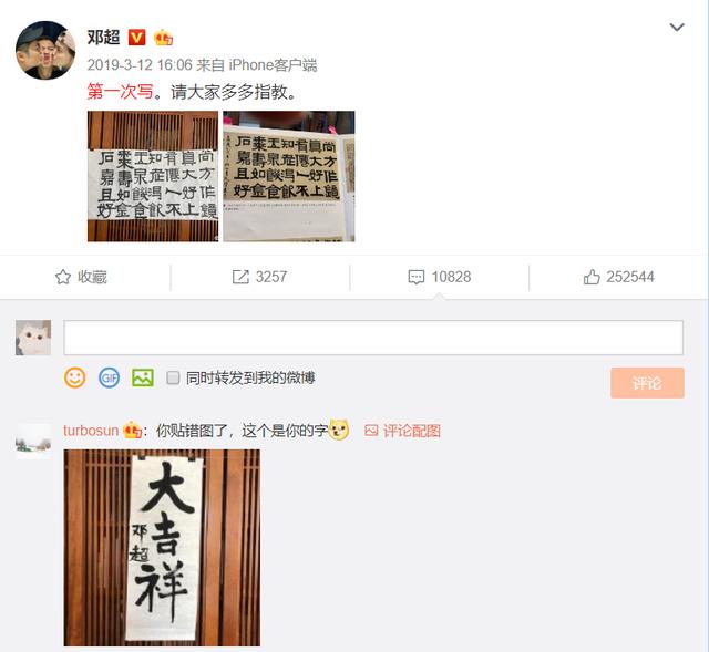 然而娘娘孙俪在评论区却丝毫不留情面的拆穿邓超:“你贴错图了,这个是你的字。”这个落款是“邓超”的书法明显跟邓超自己晒出的图片是两种不同的风格。
