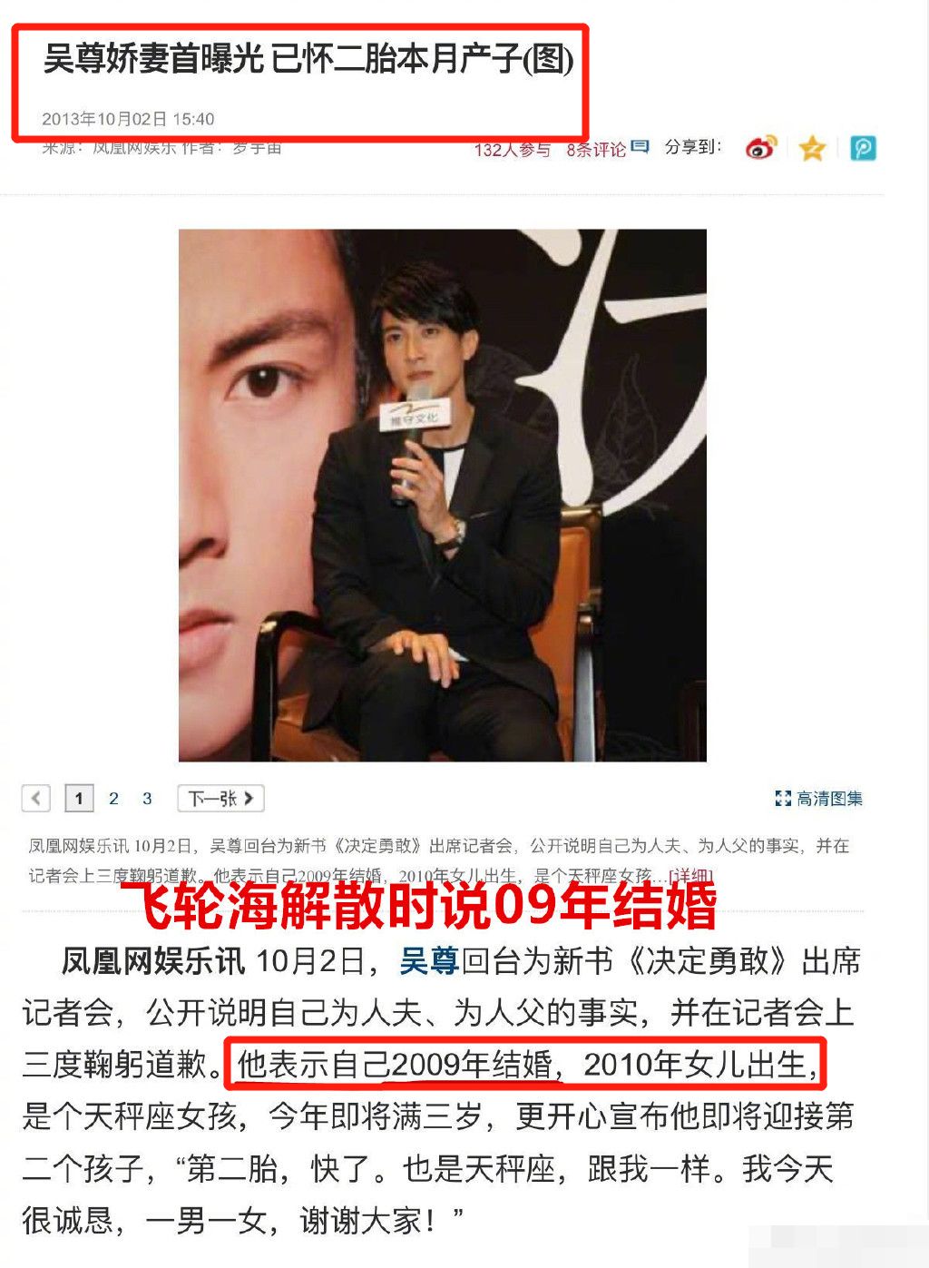 有生之年,他们还会再合体吗? 最近,吴尊因为一句话,被拱上了风口浪尖。 他带着妻子林丽吟上了一档夫妻观察类综艺节目,并在节目中首次公开了自己的结婚证,原来他们2004年就已经结婚了。 这可谓一石激起千层浪,因为吴尊加入飞轮海出道,是2005年发生的事。 毫无疑问,飞轮海是初代偶像男团,“单身”是爱豆的第一条行业铁律,可吴尊不仅不是单身,还以“人夫”身份作为爱豆出道了。 所以现在不可避免陷入争议,这样的行为,算不算迟到十年后的“偶像失格”? 2011年,有媒体拍到吴尊家里阳台上晾了婴儿衣物,以及吴尊妻子林丽吟开车出入吴家,由此推断他可能已经隐婚生子。 吴尊不仅通过经纪人出面否认,还把这家媒体告上法庭。 而且经纪人否认时表示,这不是妻子,而是吴尊的大嫂。 后来2013年吴尊开记者会承认隐婚生女事实,又表示自己是2009年结的婚。 有粉丝在他微博下留言,问他为什么当时说是2009年,他回应称,因为不过结婚纪念日,所以不记得了。 就,还蛮尴尬的。 还有人质疑,吴尊隐婚说是为了保护家人,几年前上《爸爸去哪儿》时妻子也始终戴着口罩,倒也说得过去。 如今夫妻一起上节目,之前说好的“保护家人”哪里去了? 今天,吴尊发微博回应了连日来的质疑,跟大家分享了自己和妻子林丽吟决定参加节目的心路历程。 他表示上节目是为了把他们对于婚姻的理解和做父母的经验分享给大家,希望能够给大家带来一些正能量和娱乐,并坦然接受大家的监督,自己一定会做一个合格的丈夫和父亲。 支持他的人表示很感动,愿意接受他的解释。 但也有网友指出,大家没说你不是个好丈夫,而是在质疑你不是个好偶像,为什么不解释当年骗人的事呢? 吴尊没有再回应。 这件事对于吴尊来说,算是一个比较严重的形象危机。大家回忆起了青春期追的这第一个偶像男团,飞轮海。 当时星姐年龄小,只觉得这四个大男孩各有特点,是年少时对帅哥团的初印象,现在才发现,原来团里还存在这么多暗潮汹涌的关系。 最初,华研公司在SHE女团爆红之后,颇费心选来这四位不同类型的帅哥,铆足劲儿要打造偶像男团。 为此,还特意让已经成名的SHE来帮忙带飞轮海,一起出歌、上节目、拍戏。 吴尊甚至还跟Ella传过一段时间的绯闻。 事实证明,这种套路十分管用,飞轮海迅速爆红,火遍两岸三地乃至全亚洲。 但这四个人不同于SHE这种自始至终的好姐妹关系,最初只是同事合作,吴尊和辰亦儒作为年龄相近的富二代,比较有话聊,团队解散多年之后还是好友。 包括隐婚这件事,他也是第一个跟辰亦儒坦白的。 不同于他们,汪东城上学时就四处打工,还要帮家里还贷款,他必须要很努力才能留在这个行业里。 汪东城和炎亚纶还传过绯闻。 而炎亚纶,虽然同样是富二代出身,但他年龄最小,飞轮海出道时才20岁,所以跟吴尊和辰亦儒没有那么密切。 而且,飞轮海因为成员单飞而解散,他因为年龄最小、没有找好发展方向,也是受团队解散影响事业发展最大的那一个。 他性格傲娇,以至于激动下说出跟汪东城、辰亦儒不再是朋友的话。 被迫出来圆场的辰亦儒表示:我太难了。 十多年过去,吴尊成功转型成奶爸,家庭美满,辰亦儒也于年初宣布与曾之乔结婚,迈入人生第二阶段。 汪东城如今获得了他想要的事业,过着自己喜欢的生活。 炎亚纶性格坦荡不做作,圈粉无数。 当初他们合体,是“宇宙最红男团”飞轮海,如今他们各自发展,一样是四个不同风格的大可爱。 或许,未来有天他们也会各自放下心结、再合体,到时候一定又是一个“有生之年”系列啦。