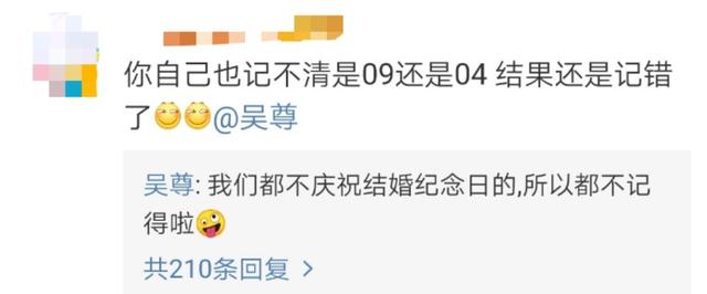 吴尊之前就表示过自己是在2009年结婚的,但实际上却是2004年就结婚的,还回复网友说因为不过纪念日,才把时间记错了,两者性质不一样。