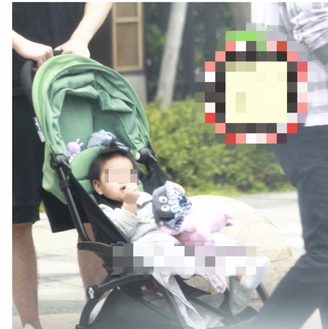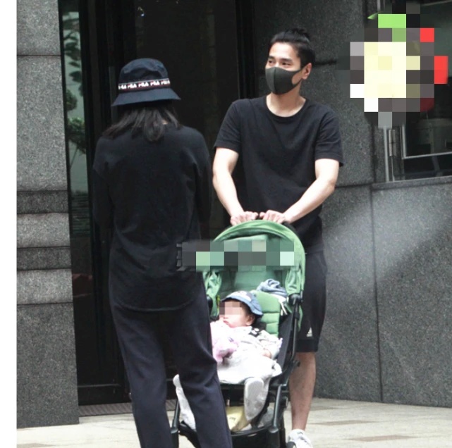 当天下午2时,穿着黑色短袖短裤、戴上口罩的赵又廷推着绿色婴儿车率先步出小区大门,高圆圆同样是穿着一身黑衣和戴上口罩,夫妻俩甚有默契。