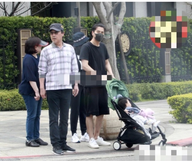 3月7日,有台湾媒体在内湖公园偶遇赵又廷和高圆圆带着Rhea出门遛弯,同行的还有赵树海夫妇,三代同堂共享天伦之乐。