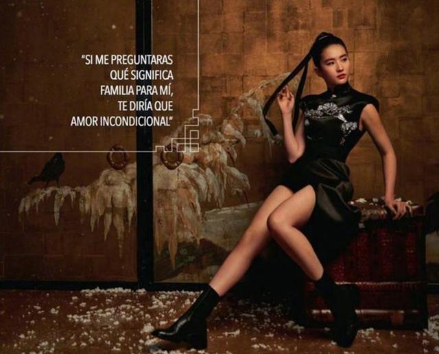 这一身黑色的旗袍造型和黑色发带的结合让刘亦菲看起来霸气侧漏。而在《Ocean Drive》这本杂志上,刘亦菲所有的造型都充满了古色古香的韵味,让人很容易就联想到她所拍摄的大片《花木兰》。