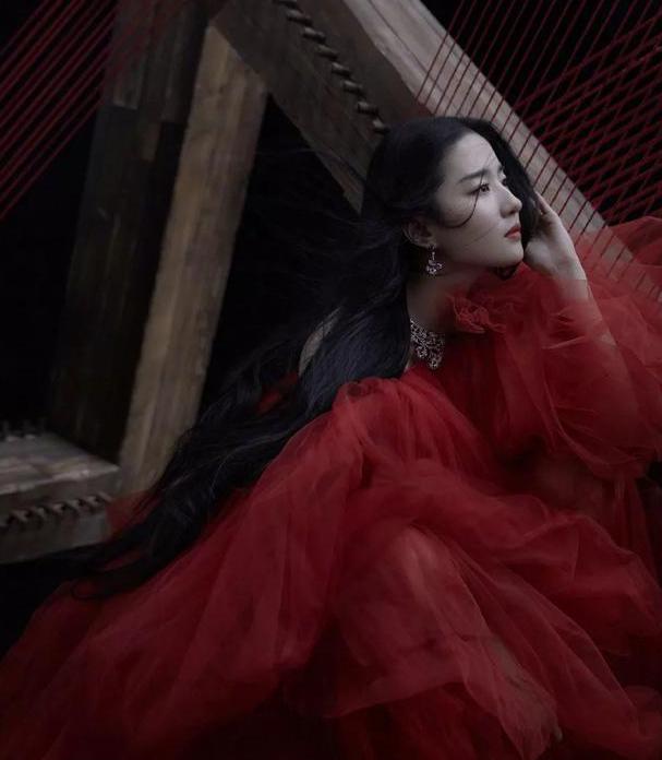 刘亦菲所穿的这一袭红裙看起来仙气飘飘,她手里拿着的这一把薄荷绿的扇子也与身后的背景互相照应。以红唇造型出现的刘亦菲,给人一种非常惊艳的感觉,她的目光当中又透露着一种坚定。