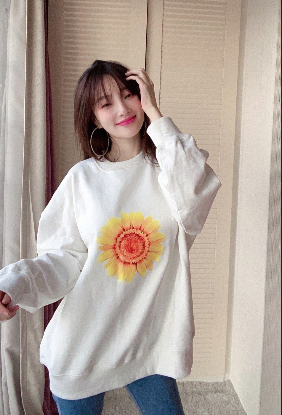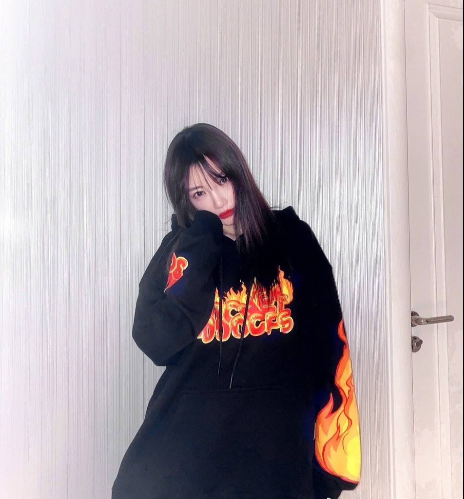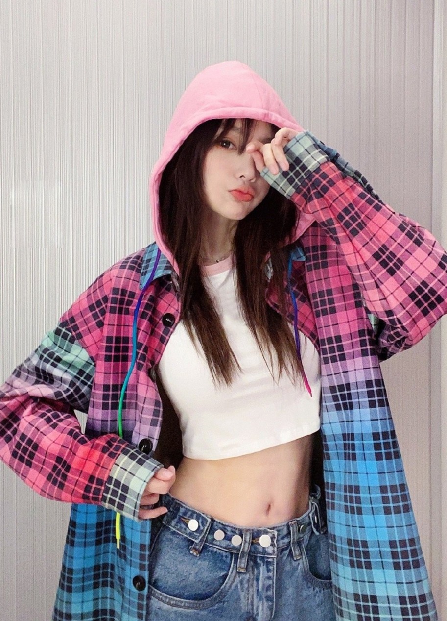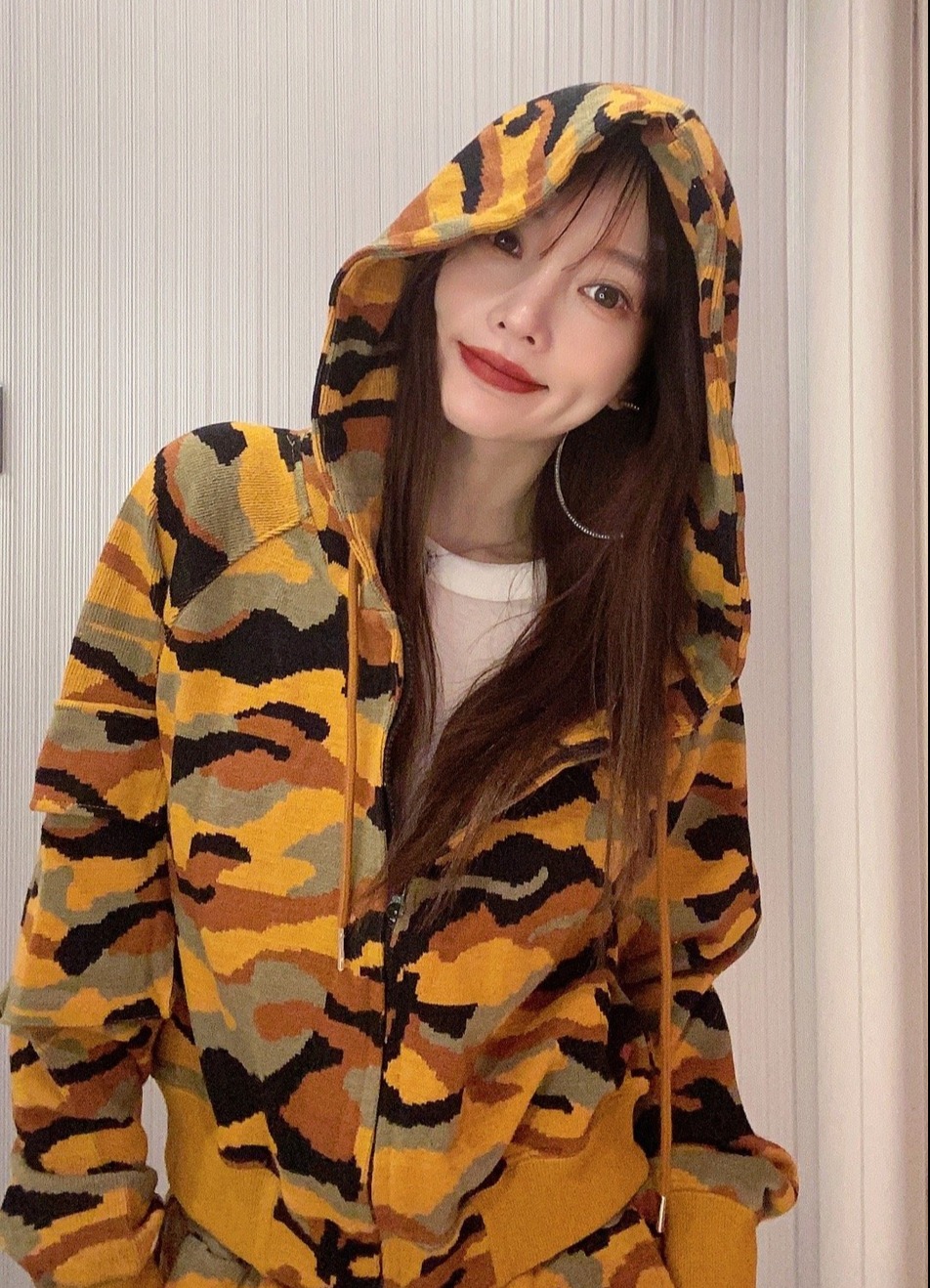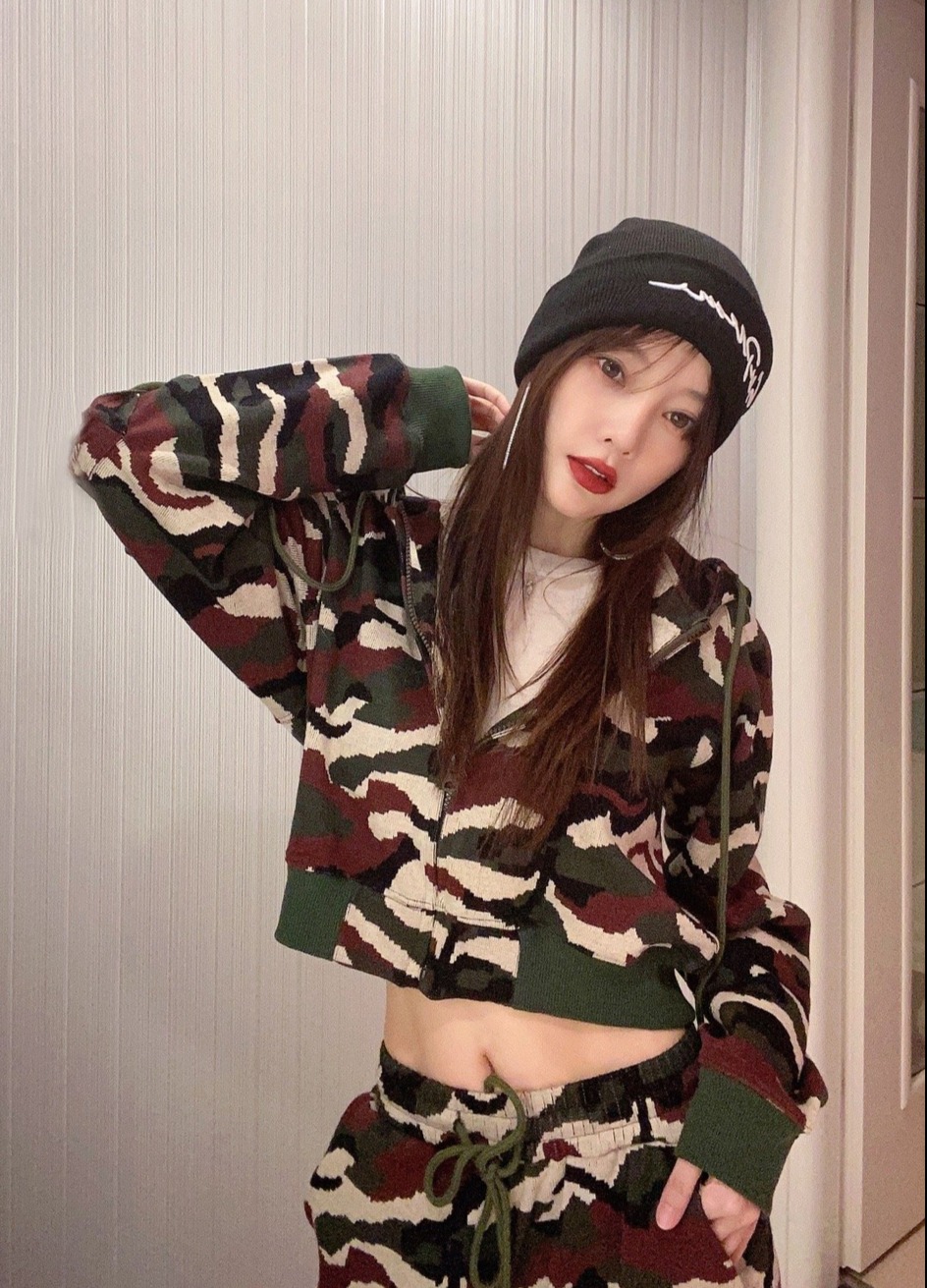 李小璐单手托腮,身穿潮装,酷劲十足。