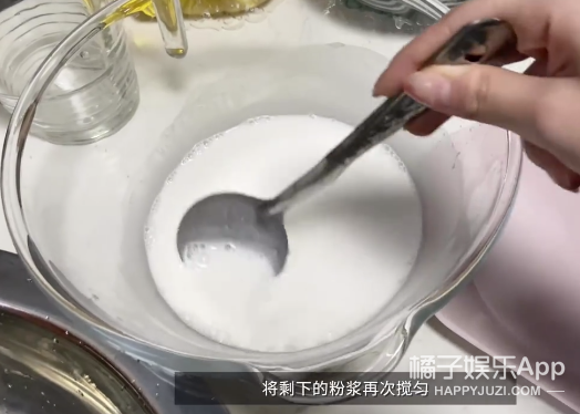 6、三十分钟后粉浆会分层,把上面的液体舀出去,