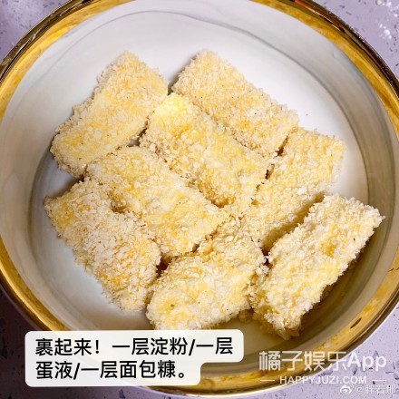 温馨提示:面包糠多裹一点,要不然不容易炸透。