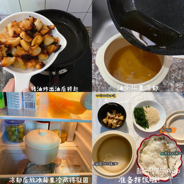 猪油倒入碗里冷却,放进冰箱冷藏凝固。