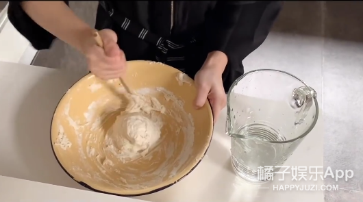 1、往面粉里慢慢加温水,用筷子搅成面团。