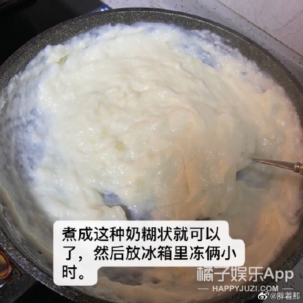 煮成奶糊状,然后放在冰箱里冷置两个小时。
