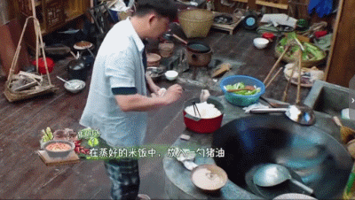 4、挖一勺猪油放进米饭,放入适量酱油,