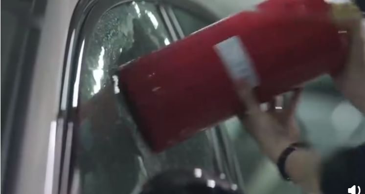 为达目的能砸车。