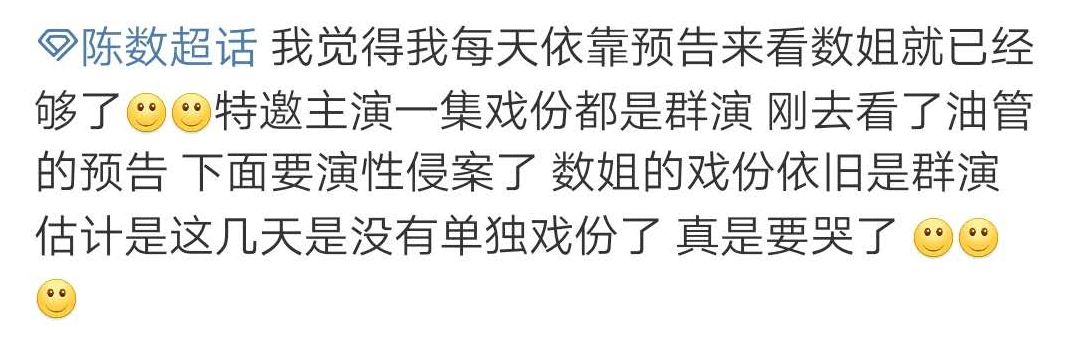 情节虚弱如此,陈数再怎么站出来就够说服力、笑容再怎么准确,也无力回天。