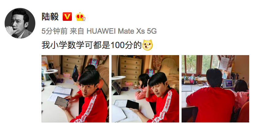 3月6日,陆毅晒出三张陪贝儿做功课的照片,并配文:“我小学数学可都是100分的