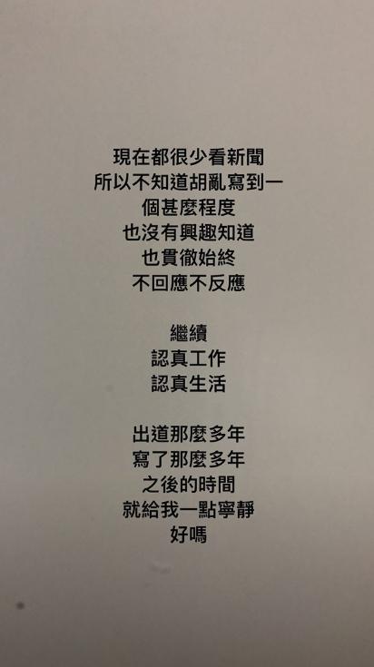 首先关于最近的传闻,唐诗咏也表示最近很少看新闻,所以也不知道胡乱写到什么程度,但还是一直贯彻始终不回应不反应,会继续认真工作,认真生活。