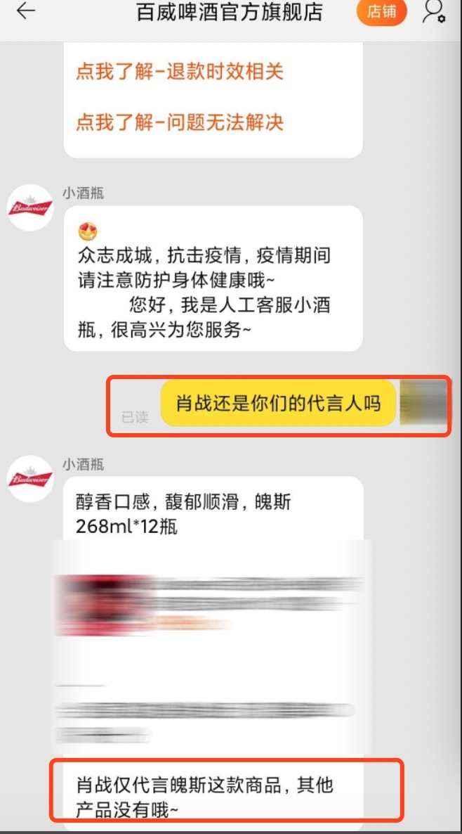 每经记者与百威啤酒客服对话截图