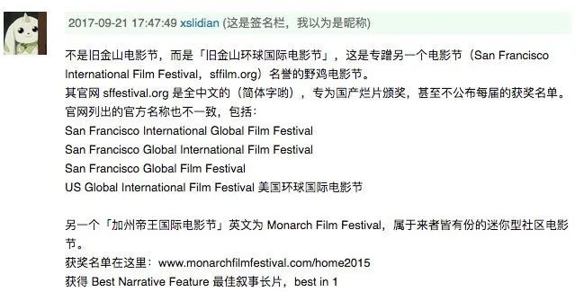 但仔细一查,两个电影节都是野鸡奖,堪比《围城》里方鸿渐的克莱登大学。