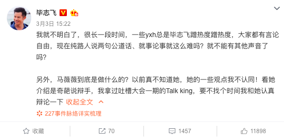 对于他来说,讨论什么不重要,怎么讨论也不重要,重要的是自己参与了这场讨论,引起了大众围观。