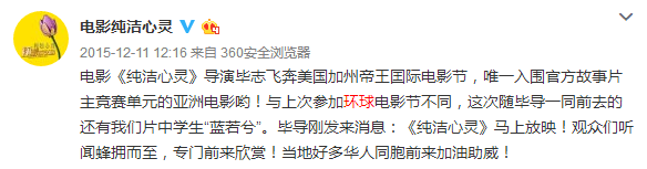 早在2015年,官方就宣布《逐梦演艺圈》不仅入围了第23届美国旧金山环球电影节剧情片主竞赛单元。