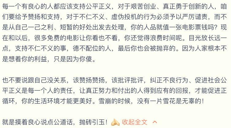 就像文章开头他评价肖战事件的一样。