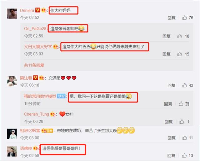孩子的干妈陈法蓉留言表示:“充满爱。”张晋半夜加班给儿子喂奶的画面的确很有爱啊!不过有网友却问到:“姐,我问一下这是张晋还是娘娘?”再看热评前几条,原来有不少的网友都张晋、娘娘傻傻分不清楚了。