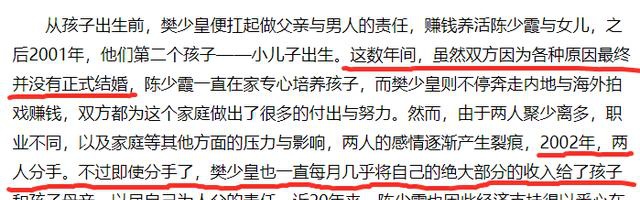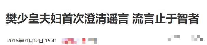 2016年,樊少皇夫妇首次在采访中澄清谣言。樊少皇透露称自己并未与陈少霞结婚,两人在2002年时已经分手。但即使分手,多年来他也一直每月几乎将自己的绝大部分收入打给孩子和孩子母亲,孩子与他一直保持着密切的联系,贾晓晨也并非小三。
