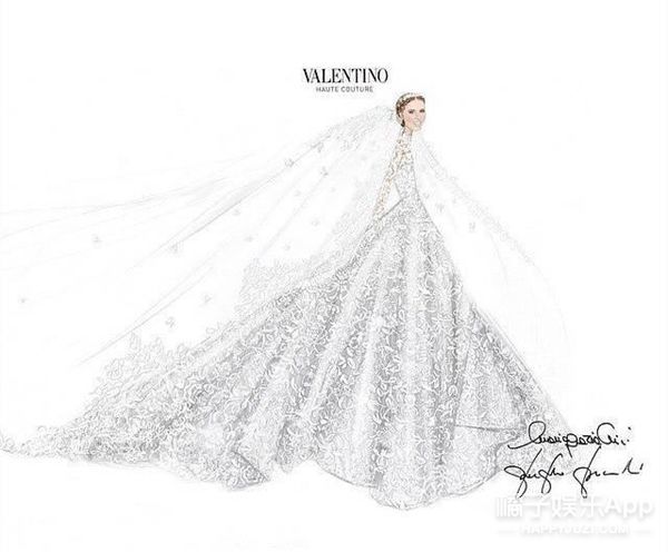 碧翠丝穿的婚纱是Valentino 2015春夏高级定制系列婚纱,披肩是特别为她定制的。