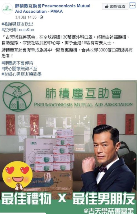 目前口罩依然非常紧俏,很多人都难以买到口罩,所以古天乐通过搜集,给大家带来了方便,助力民众顺利渡过难关。