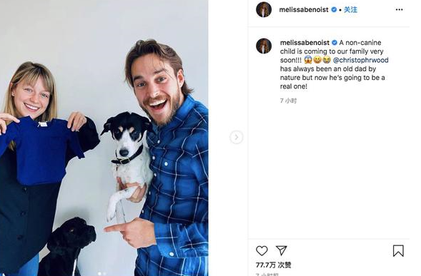 3月5日消息,据外国媒体报道,《超级少女》主演梅莉莎·班诺伊近日在社交平台上晒出与丈夫克里斯·伍德合照,并宣布怀孕。