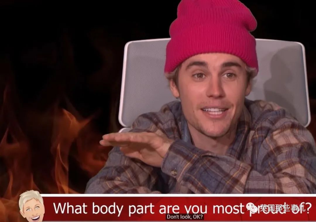 比伯:“我觉得哈,我有个不错的臀部。毕竟,我这么多年一直在练冰球嘛,所以我算是有个冰球臀,一个不错的冰球臀…别盯着看好吗?它是属于我老婆的,ok?别看。”