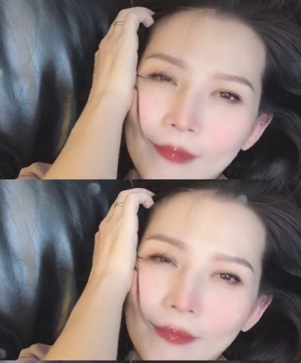 视频中蔡少芬散着凌乱的头发,皮肤白皙,妆容精致,美丽动人宛如少女。