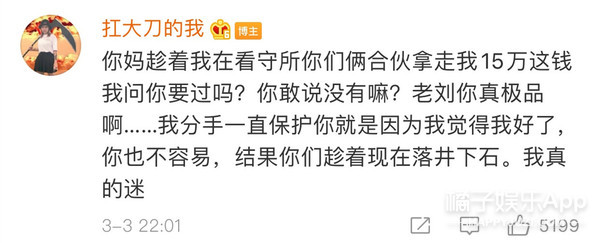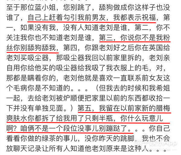 3月3日晚8点,老刘对象蓝小姐发文反击。