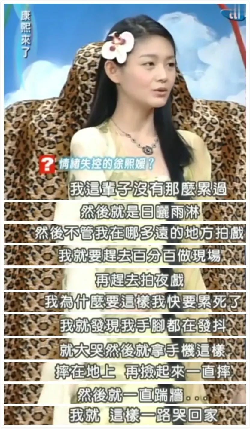 可想而知精神和体力双重压力多么大,《娱乐百分百》制作人小隆记得大S拍完《流星花园》来录节目时,压力很大,“蛮情绪不稳的,就是比较沉默,她进来都是像行尸走肉。 ”终于有一次大S失控痛哭,但是哭完还是继续当铁人。