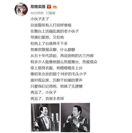 郁钧剑,尼格买提等数位圈内人发文缅怀。