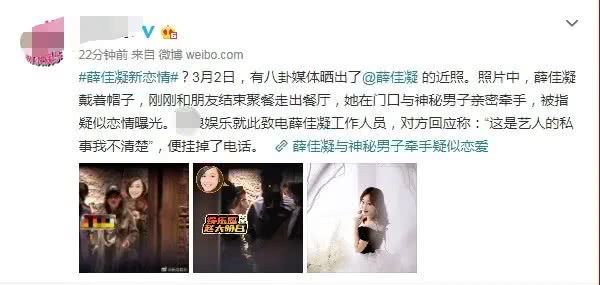 在得知了此消息后,有媒体向薛佳凝的工作人员求证,没想到对方直接表示“艺人私事我不过问!”随即挂断电话,十分干脆果断。不过相比之前工作室直接否认的态度,这次却暧昧了很多。