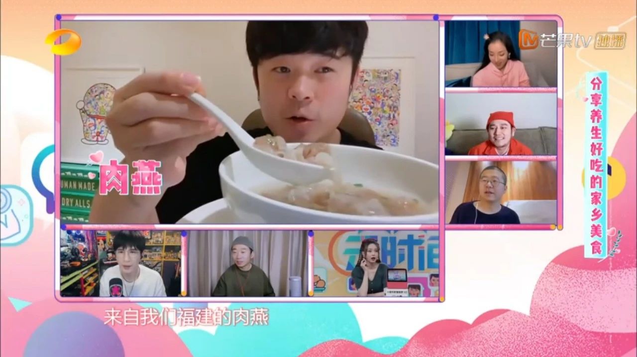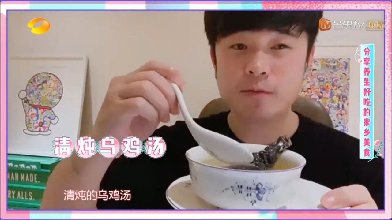 接着节目就成了陈赫的吃播,鸡腿、肉燕、乌鸡汤全都端上来了。